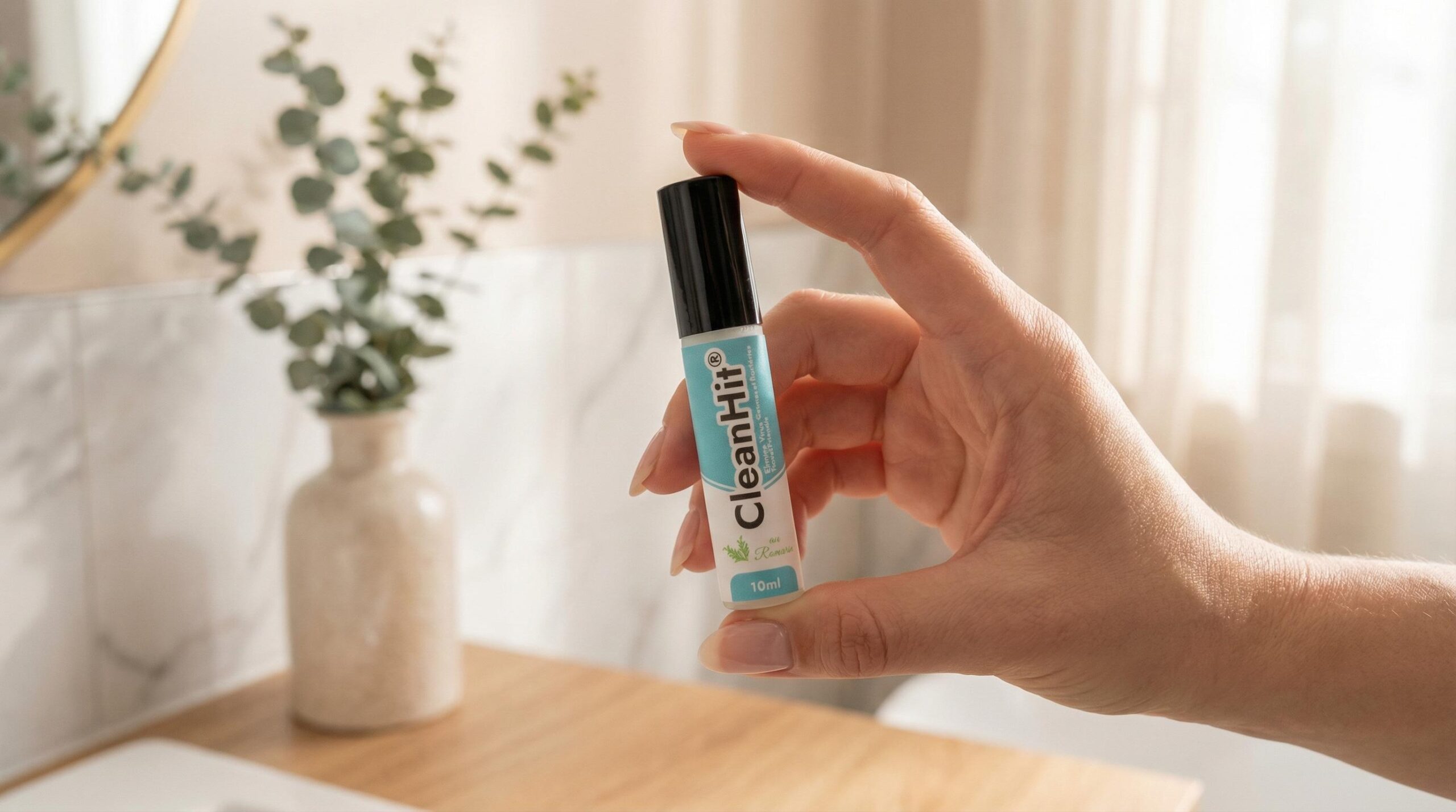 Oui, avec le bon format. CleanHit® de 10ml tient dans une poche de pantalon ou de veste, permettant une extraction et utilisation totalement discrètes. Son parfum naturel de romarin, contrairement aux odeurs chimiques agressives, ne signale pas à tout l’espace que vous désinfectez. En contexte professionnel ou social, cette discrétion est cruciale pour utiliser le produit sans gêne ni malaise.